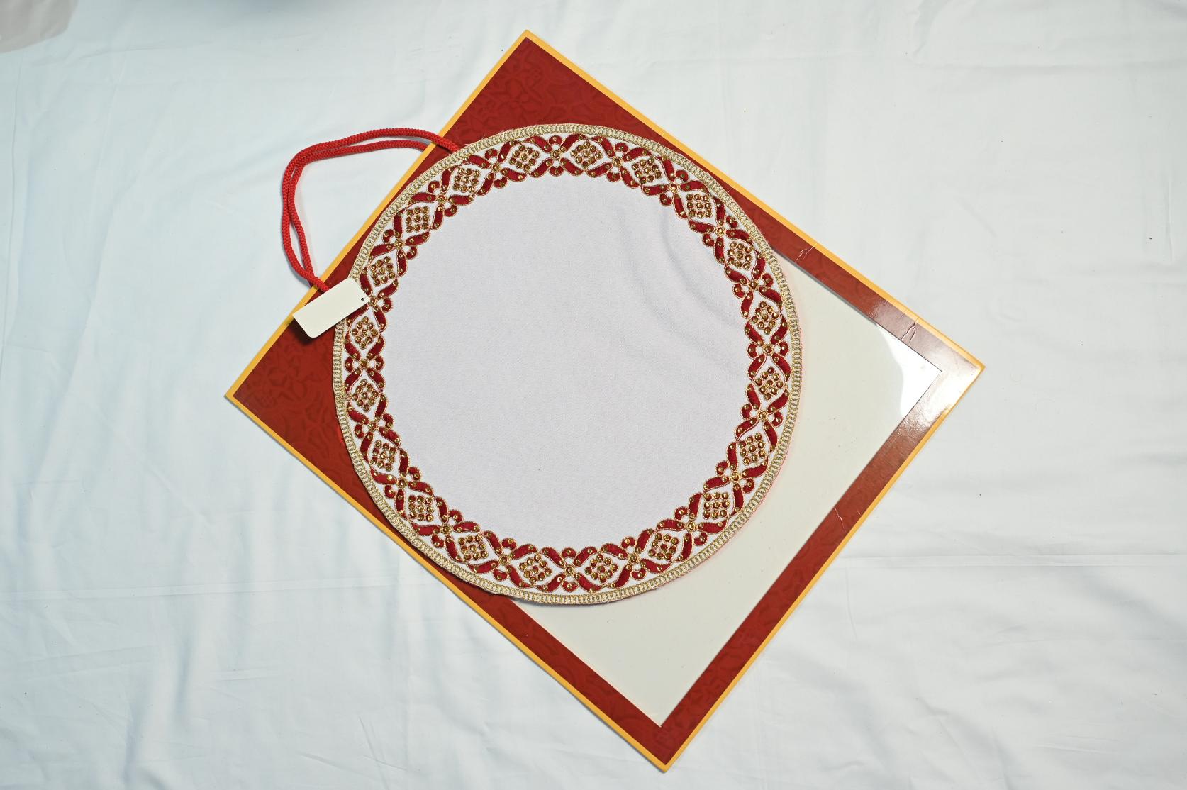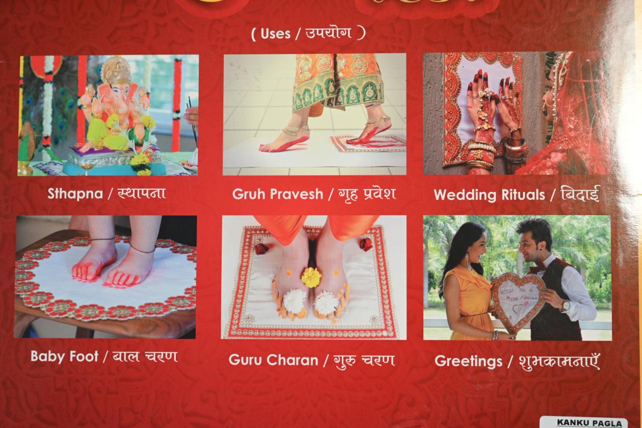 Kanku Pagla Rumal Holds Deep Cultural And Emotional Significance In Indian Marriage Traditions. During The Post-Wedding Ceremony, The Bride Dips Her Feet In A Mixture Of Kanku (Vermilion) And Rice Paste, Then Walks Onto The Rumal Or Cloth Placed At The Entrance Of Her New Home. These Footprints Represent The Arrival Of Goddess Lakshmi, Bringing Prosperity, Happiness, And Fortune To The Household. The Kanku Pagla Rumal Is Often Made Of Soft, Decorative Fabric And Preserved As A Cherished Keepsake Of The Wedding Ritual. It Is A Symbol Of Love, Tradition, And The Sacred Bond Between The Couple And Their Families.