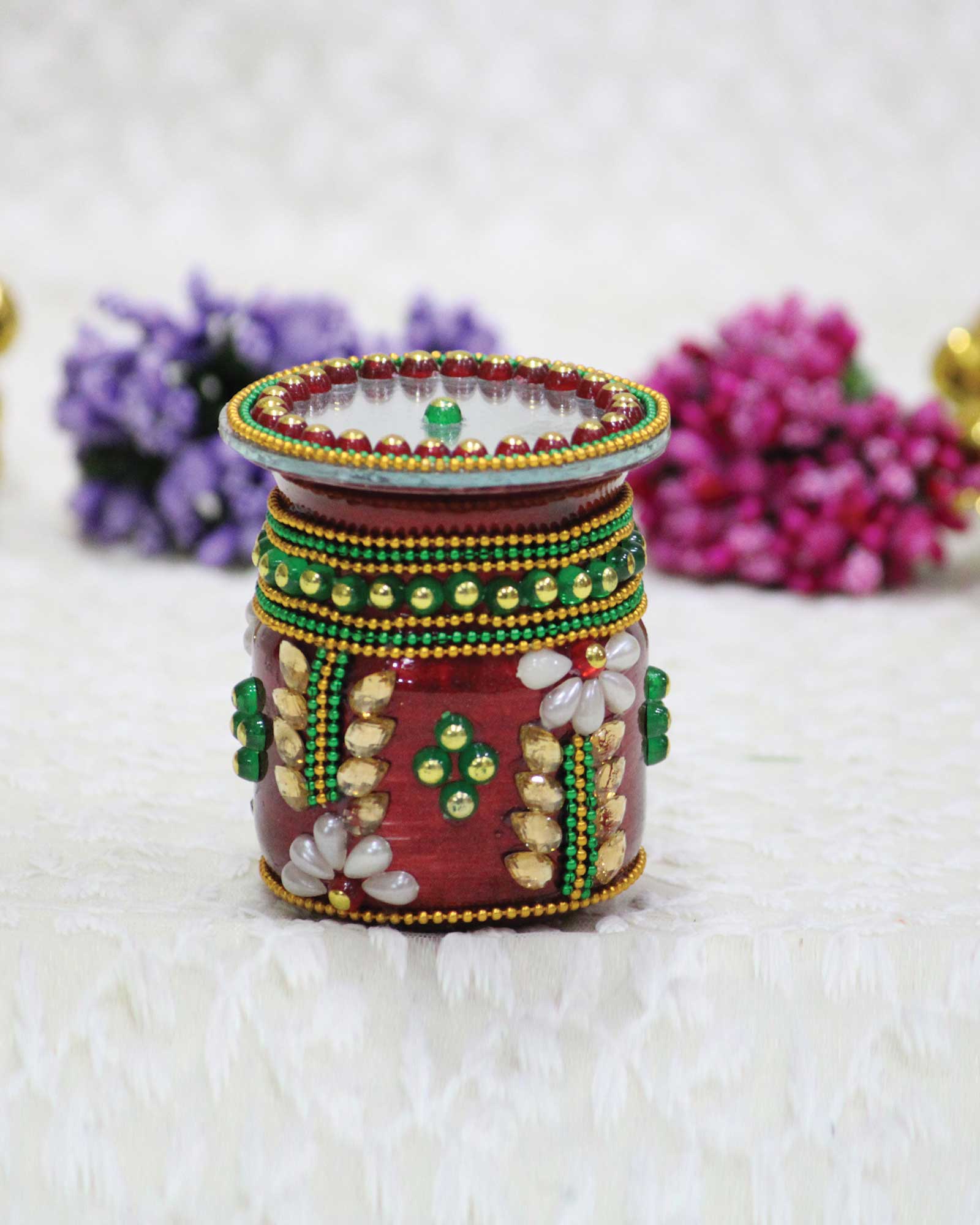 Tabudi Is An Essential Item In Hindu Religious Ceremonies, Commonly Used To Hold Sacred Substances Such As Kumkum (Vermilion), Haldi (Turmeric), Chandan (Sandalwood Paste), Or Akshata (Rice Grains). Usually Made From Brass, Copper, Or Silver, The Tabudi Is Both Functional And Decorative, Representing Purity And Devotion. It Helps Maintain Cleanliness And Organization During Rituals While Adding A Touch Of Tradition To The Pooja Setup. Often Beautifully Designed, The Tabudi Serves As A Symbol Of Reverence And Respect Toward The Deities.